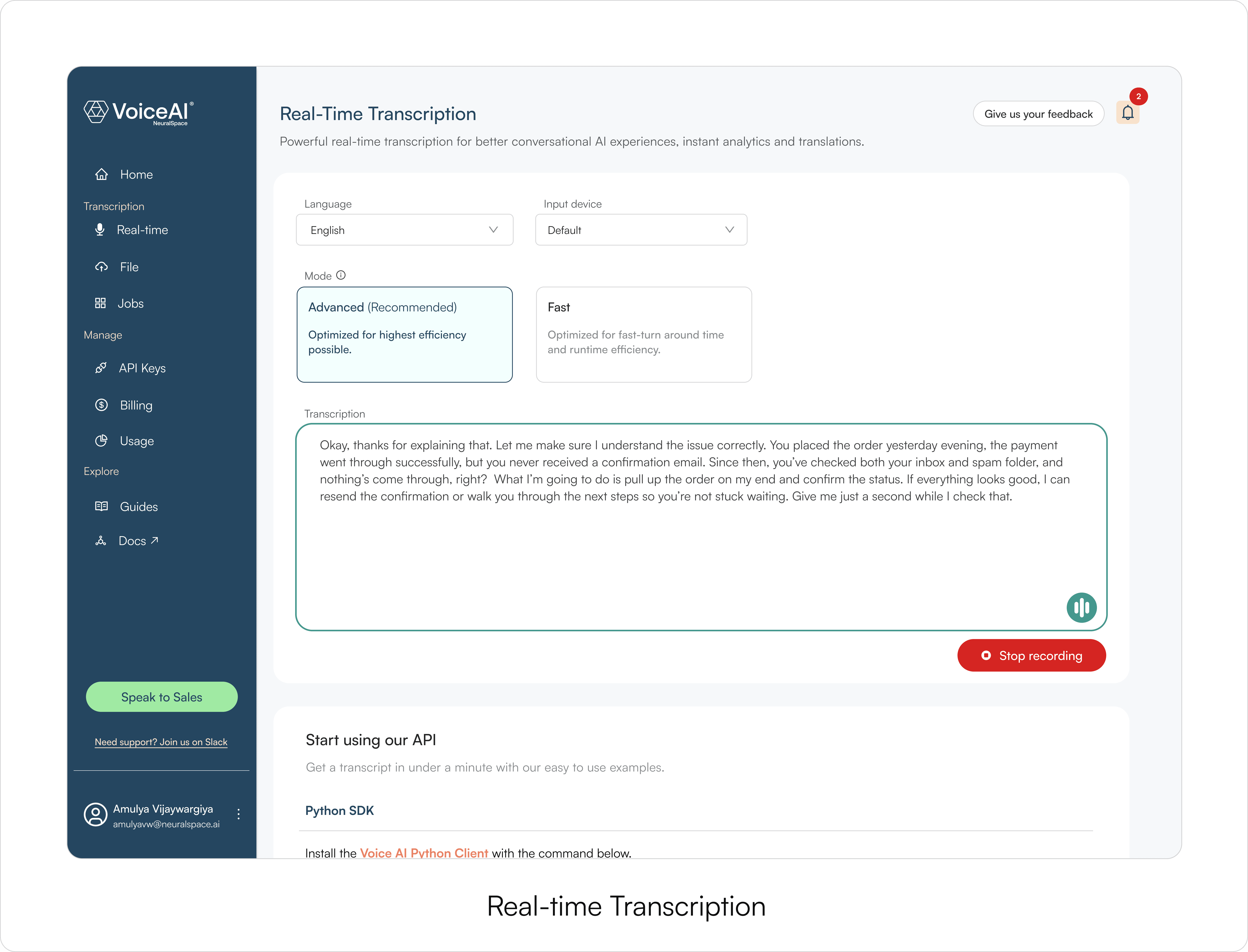 Together, these changes shifted VoiceAI from a transcription tool into a flexible environment for exploring speech-based workflows.
