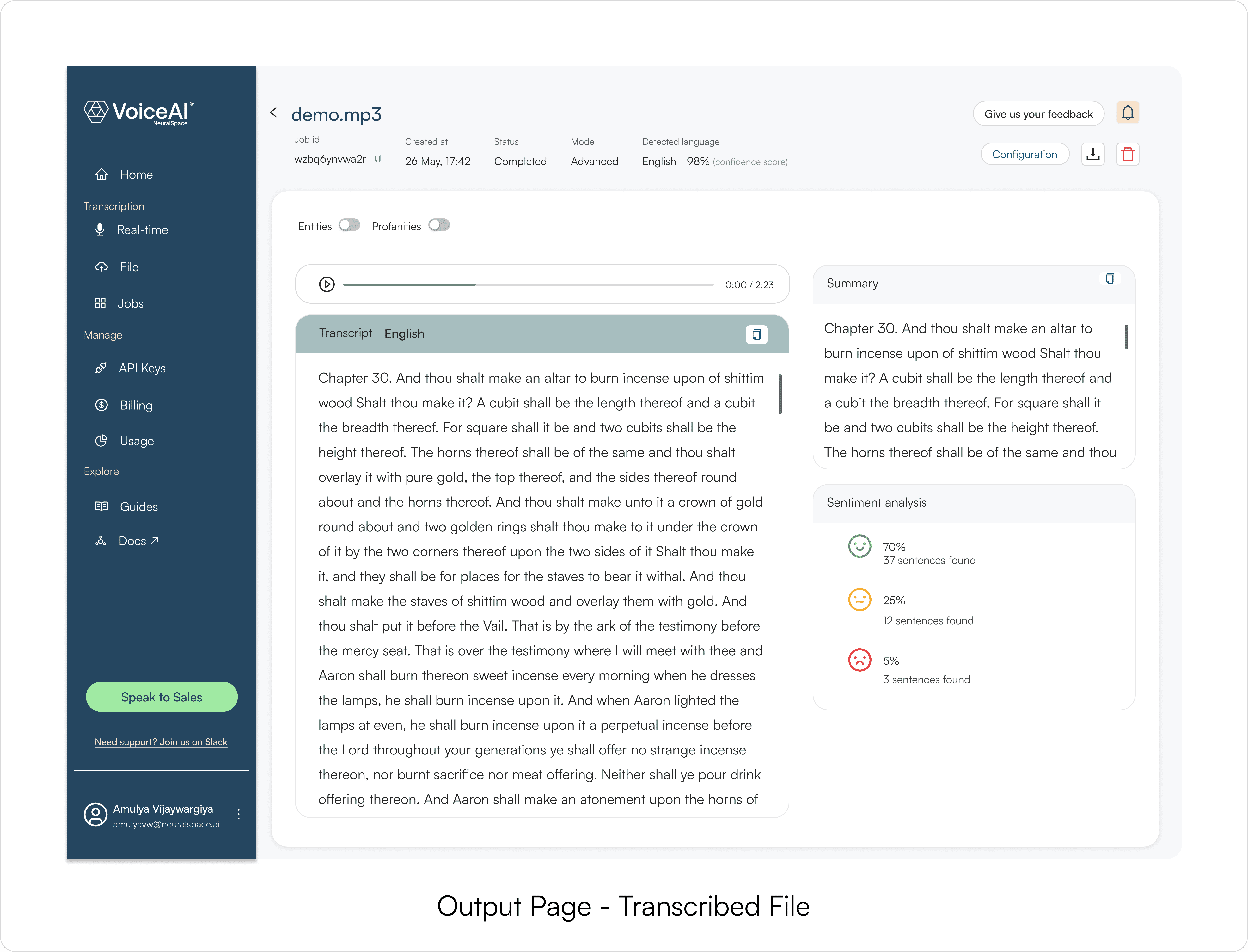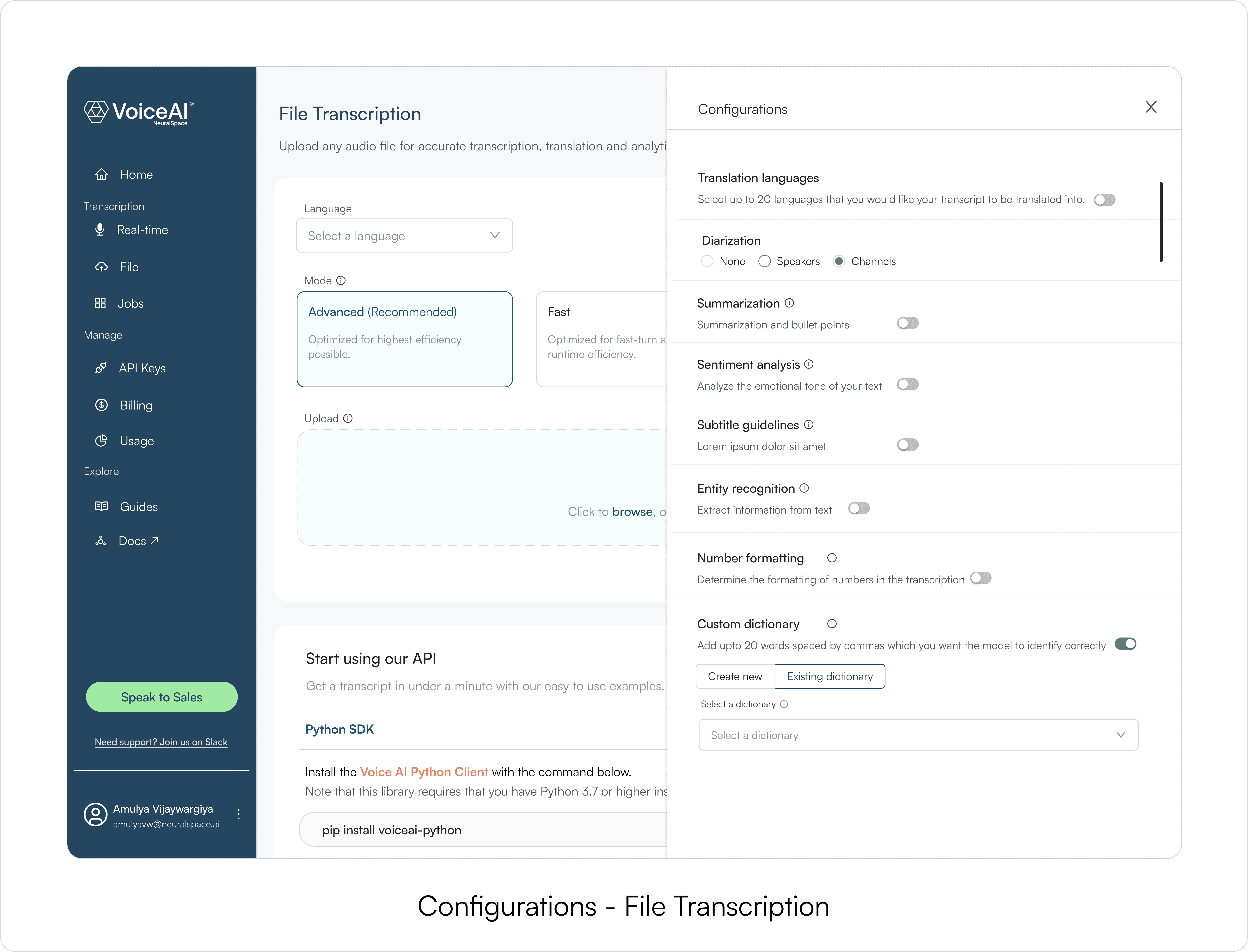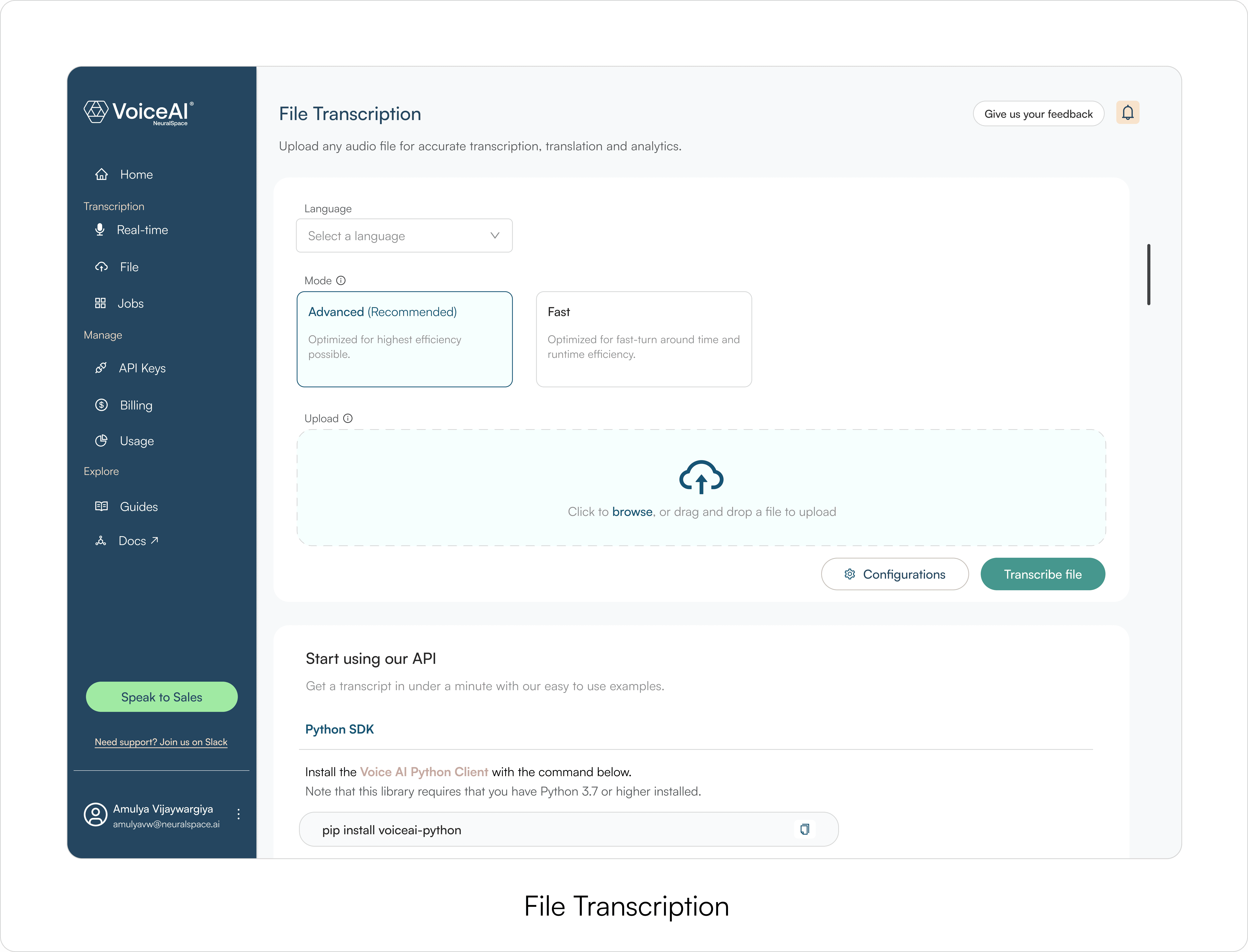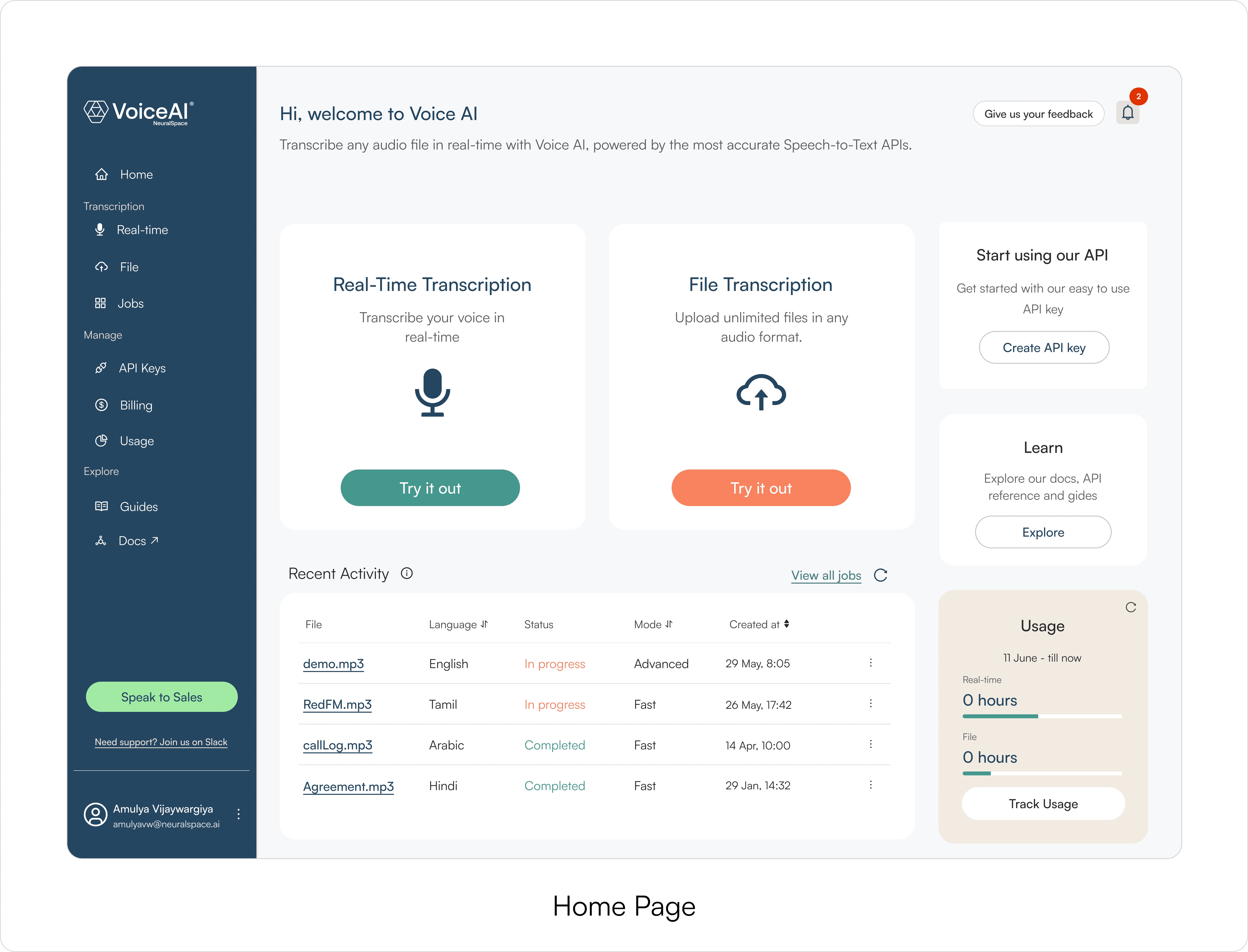 NeuralSpace had strong speech APIs, but evaluating them required code. VoiceAI made that evaluation possible through a simple web platform where teams could test STT/TTS outputs first, then integrate with confidence.