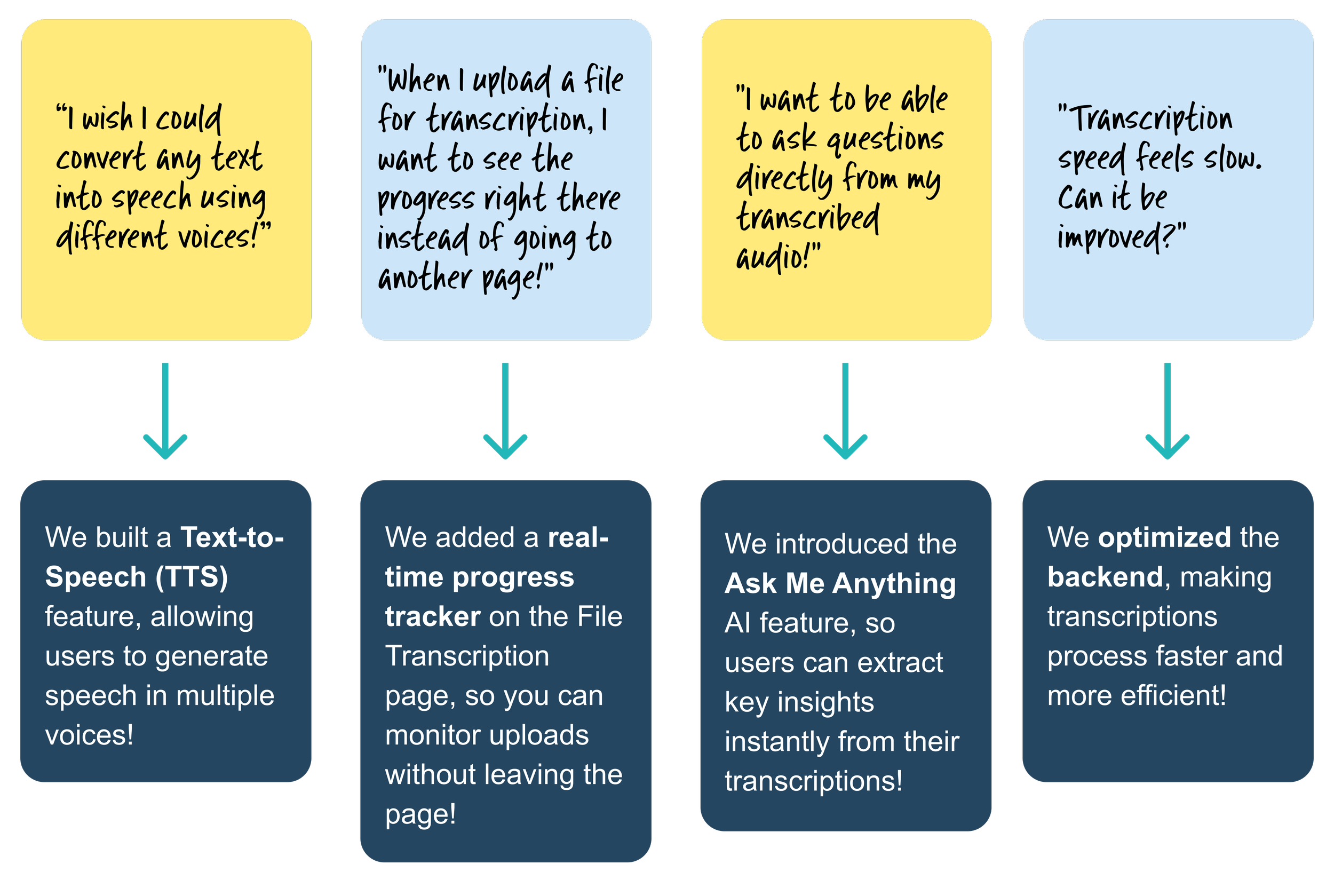 Working closely with engineering and product teams made implementation smoother. Aligning early on helped us optimize backend processes, cutting transcription speed by 45% while keeping the experience seamless.
