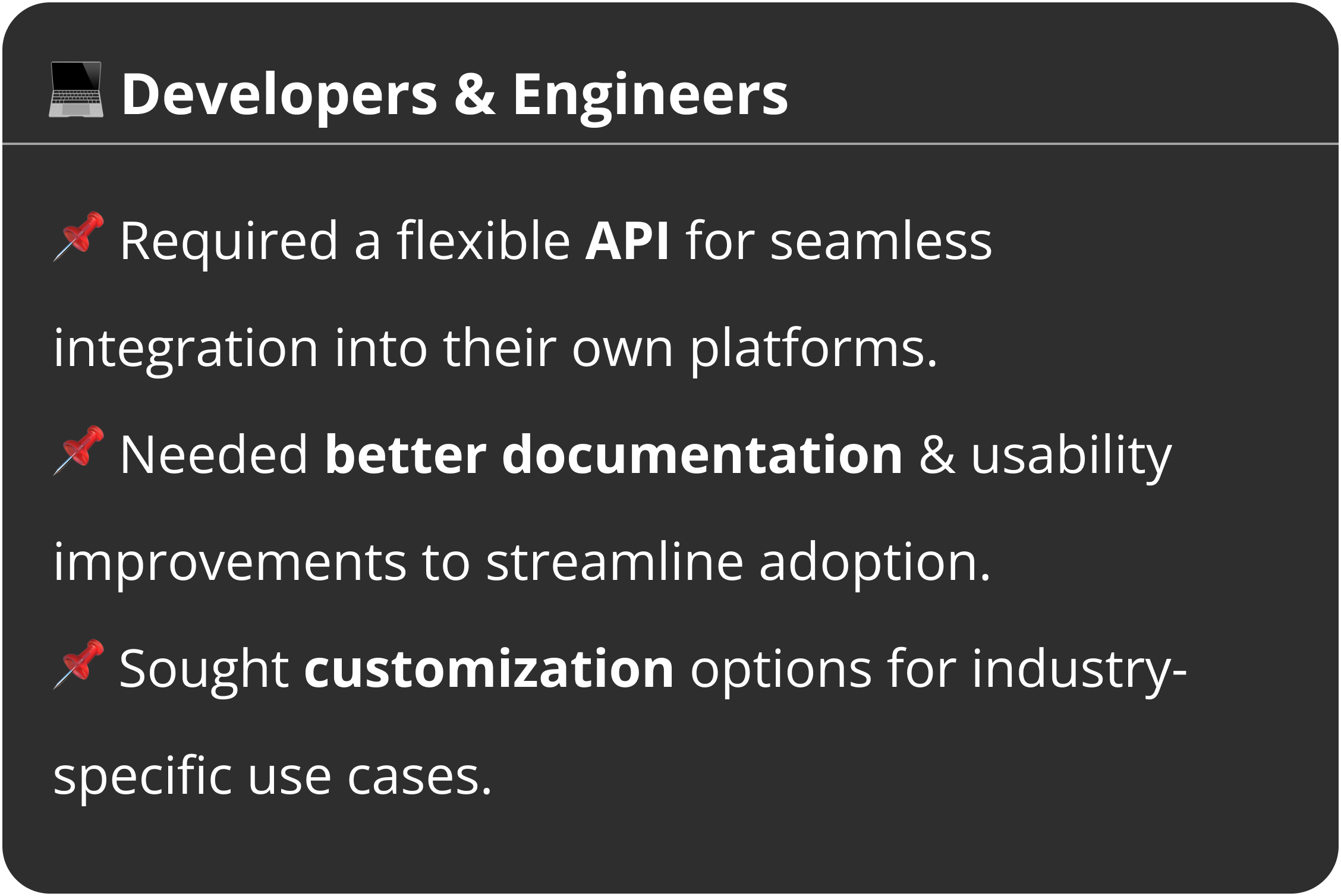 We conducted interviews with key stakeholders—our CTO, Product Head, Engineers, Marketing Head, and Sales Head—to align business, technical, and user needs.