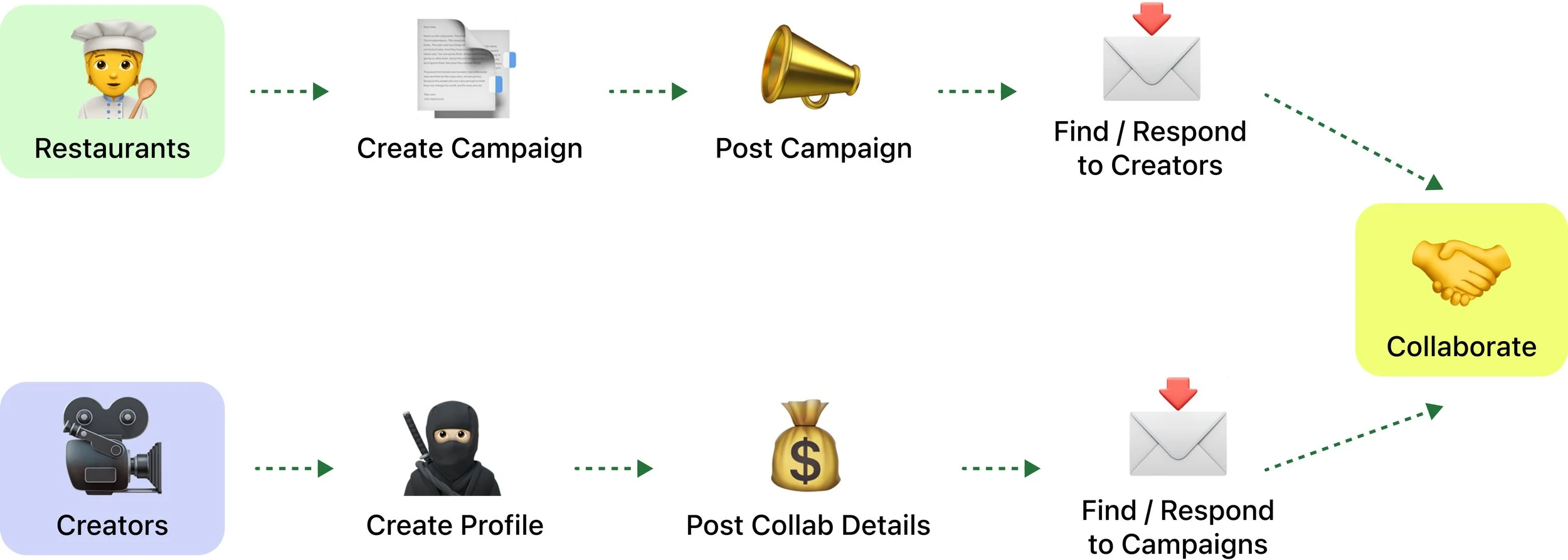 However, while the videos sparked discovery, collaborations between restaurants and creators were happening outside the app through cold DMs, scattered emails, and unstructured conversations. This created three issues: